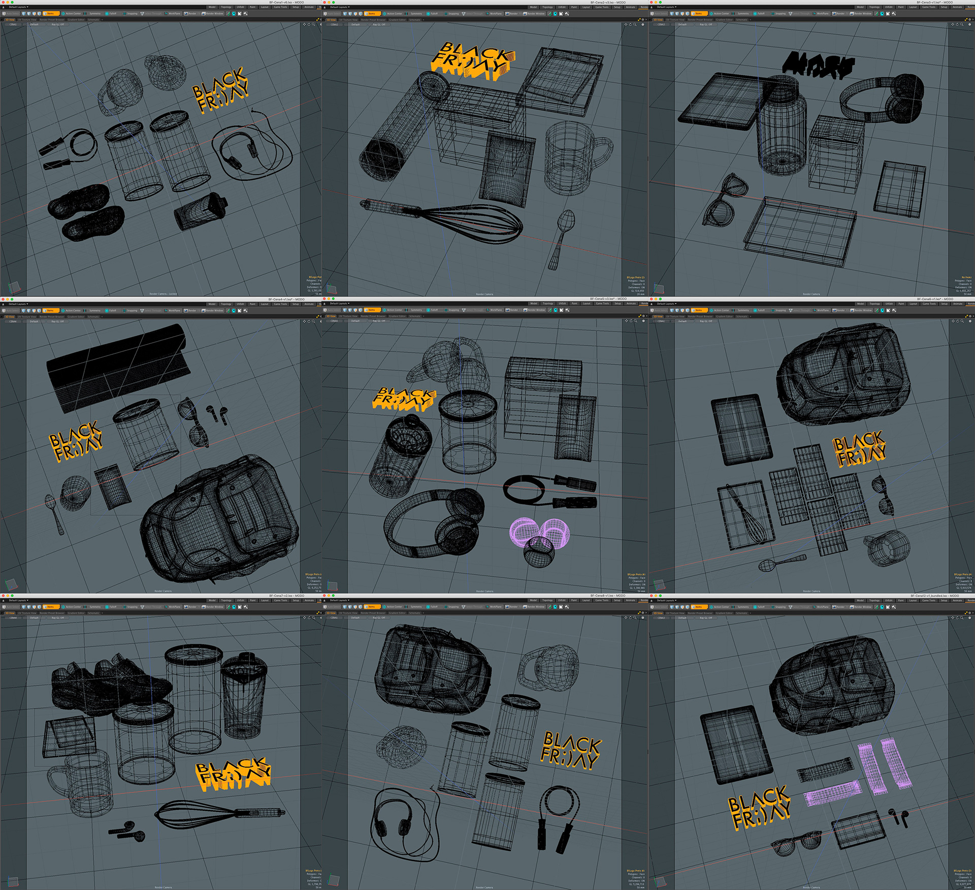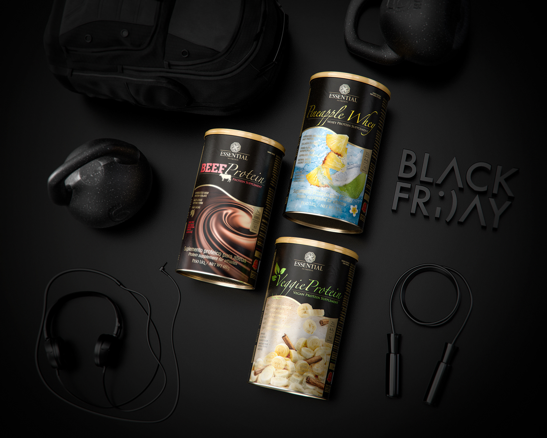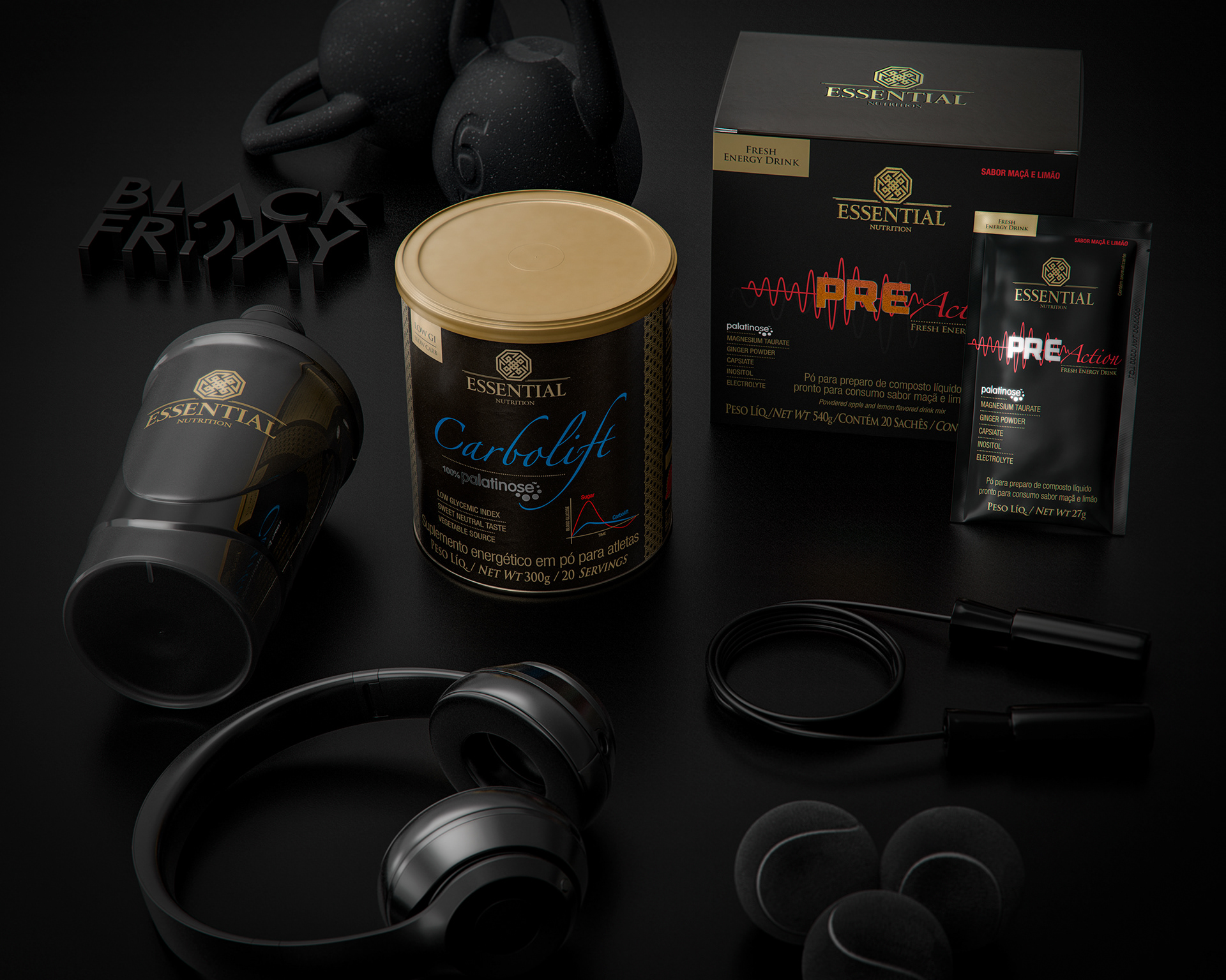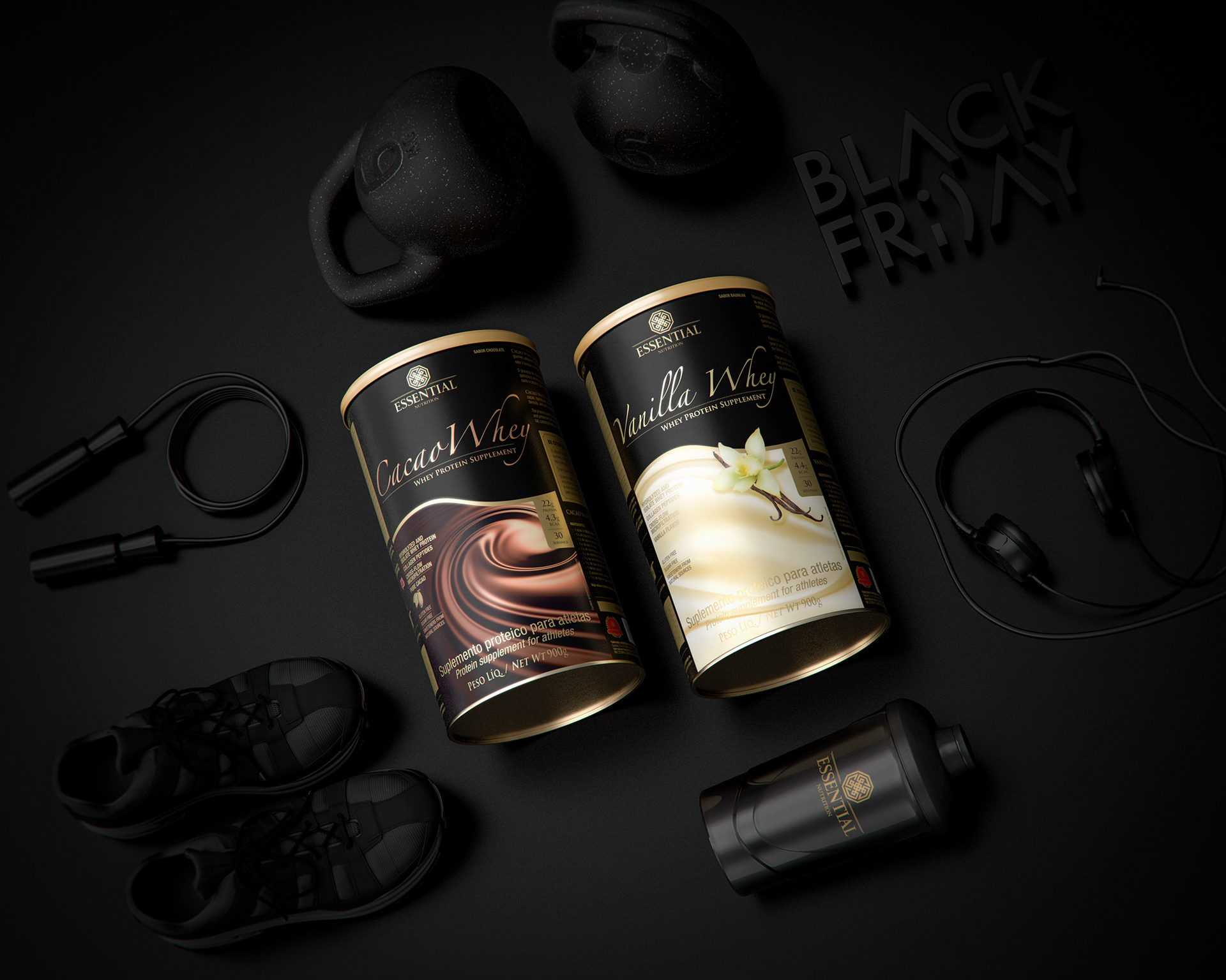 Modeling, texturing, UVMapping, rendering and post production of Black Friday's commercial images from Essential Nutrition. Some assets came from turbo squid because there was no time to model from scratch.