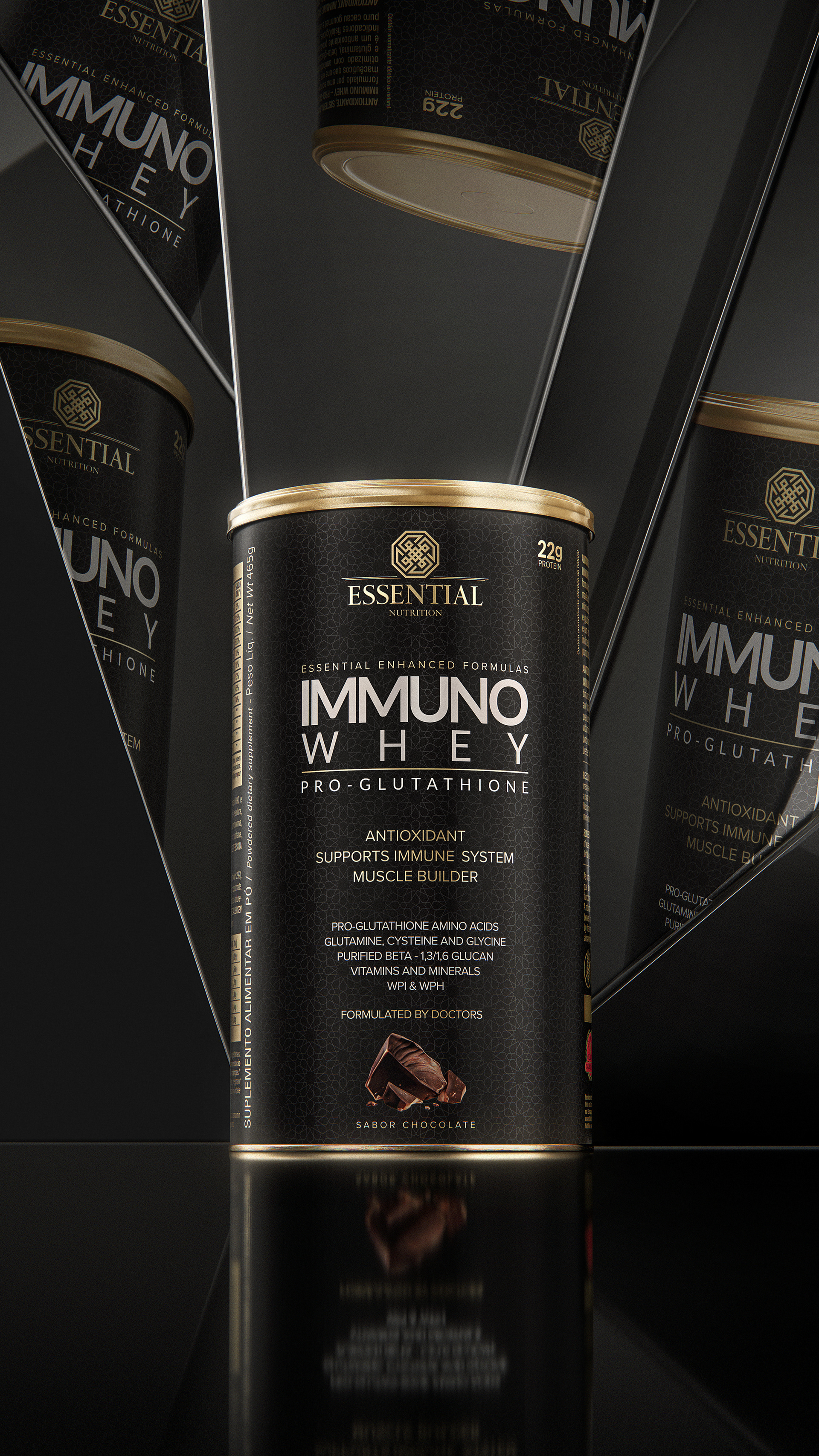 Modeling, texturing, UVMapping, rendering of products from Essential Nutrition. Post production by João Cavalcante.