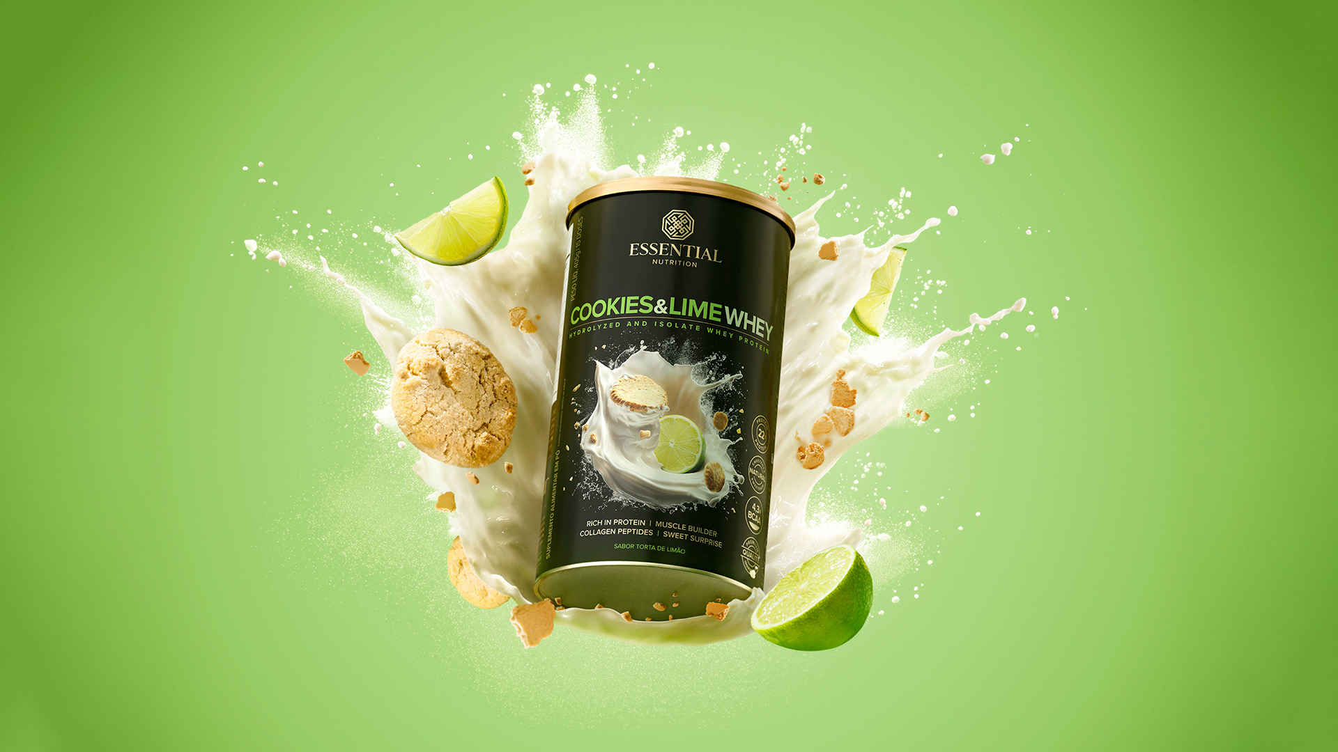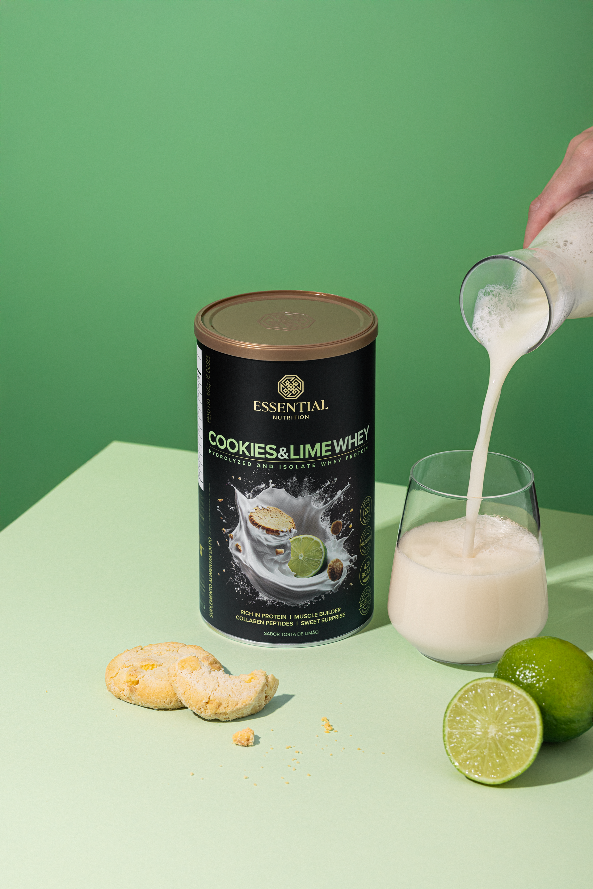 It begins the moment we read the name. It deepens as we take in the aroma. It transforms completely when we taste the flavor. Cookies & Lime Whey by Essential Nutrition delights us from the very first contact.