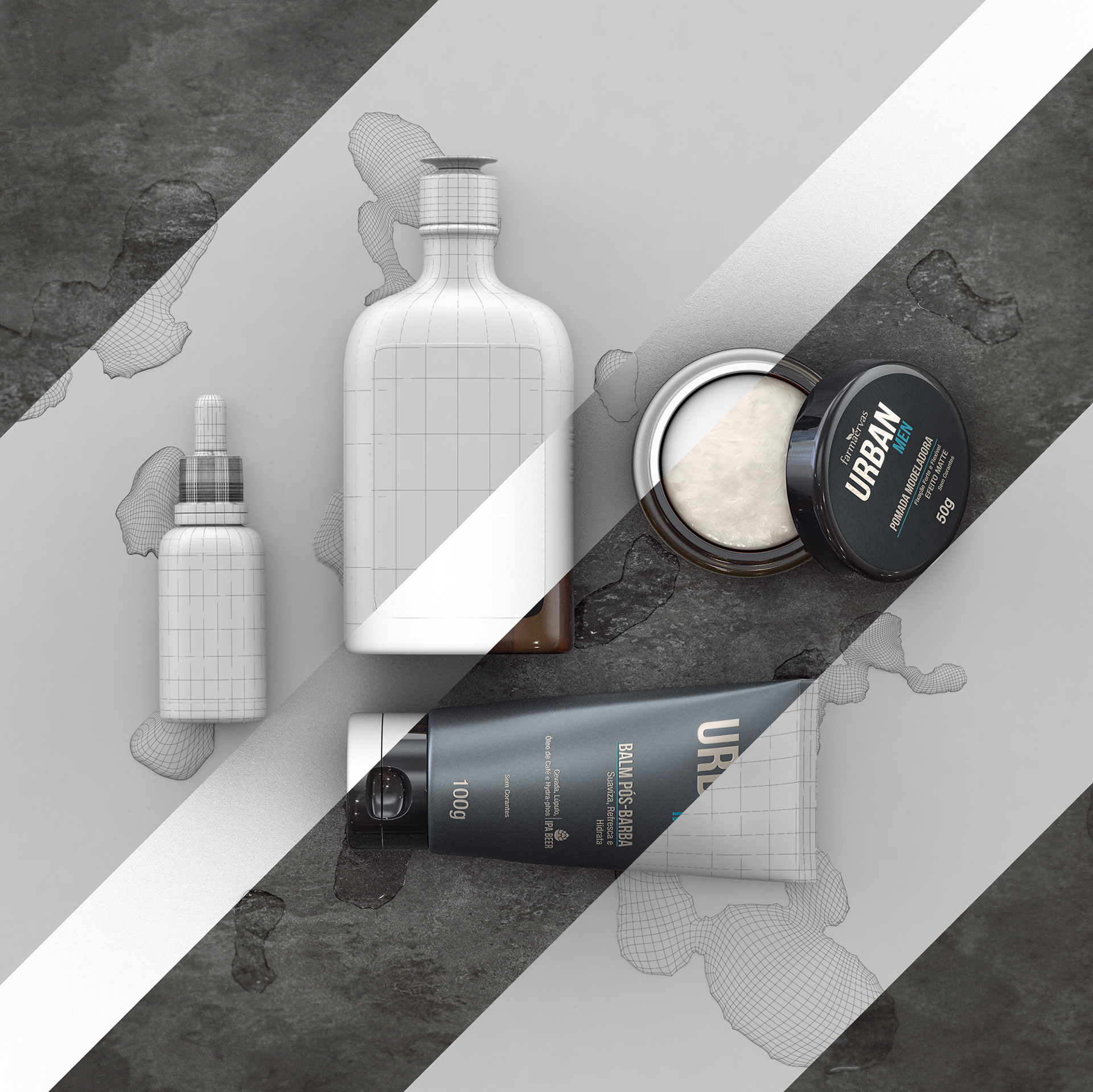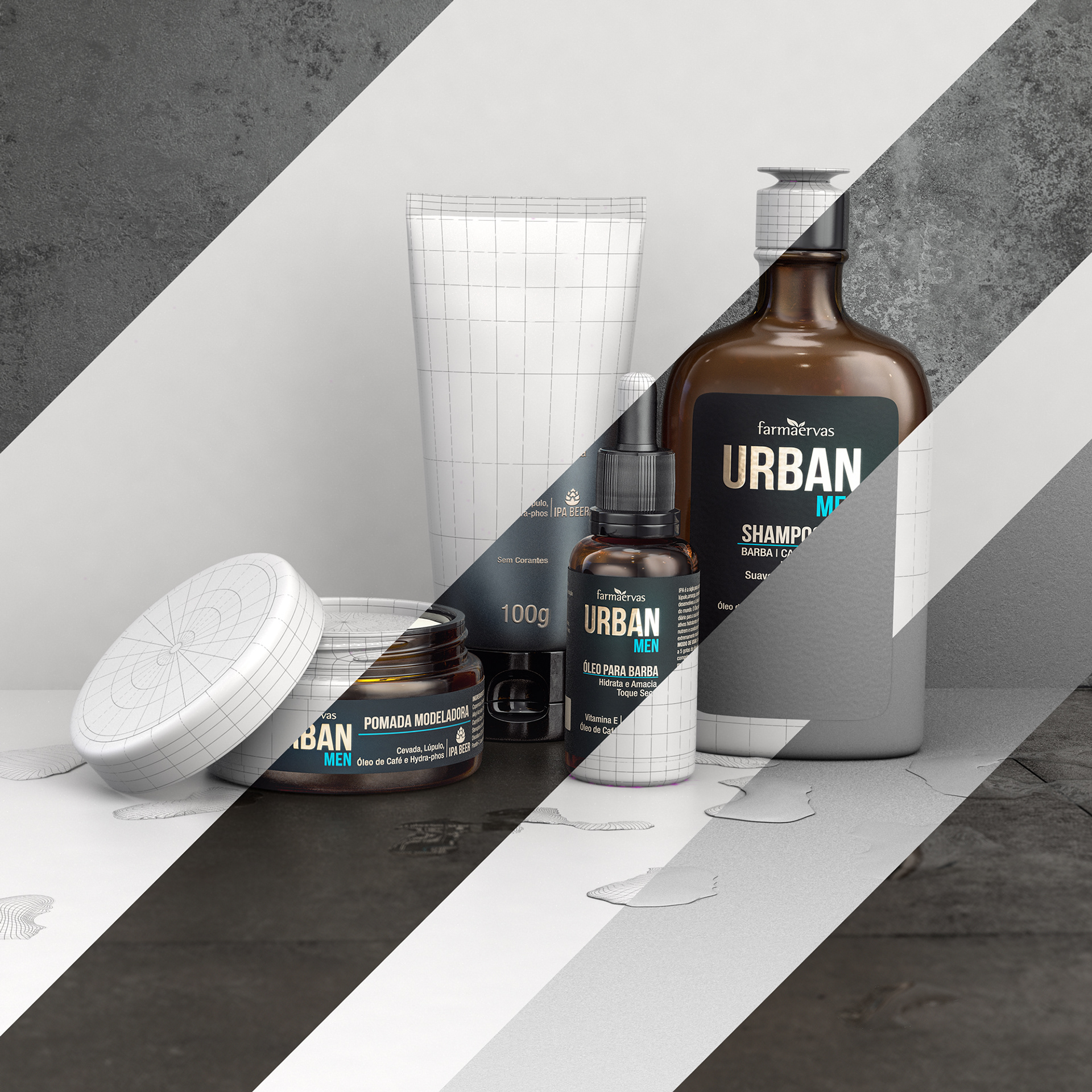 Modeling, texturing, UVMapping, rendering and post production of Farmaervas Men line products.